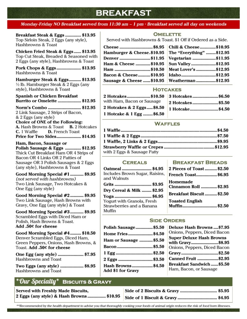 Norm’s – OPEN for Dine-In! Always offering Catering, Curbside & To go: 208-733-9735 Share this: Share on X (Opens in new window) X Share on Facebook (Opens in new window) Facebook